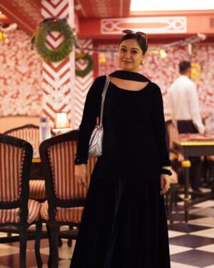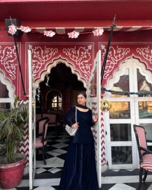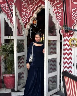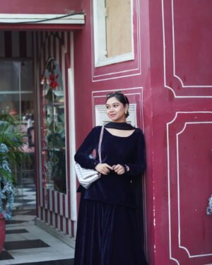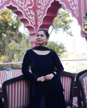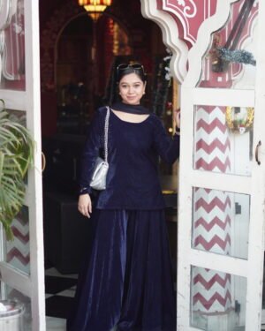 Noor-e-Shaam Navy Velvet Kurti Plazzo Set